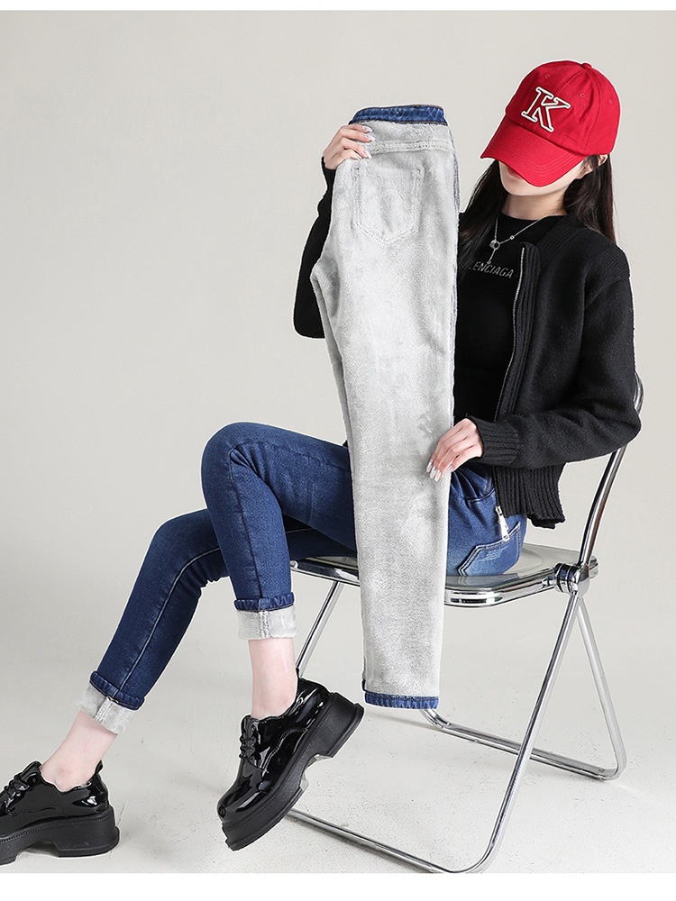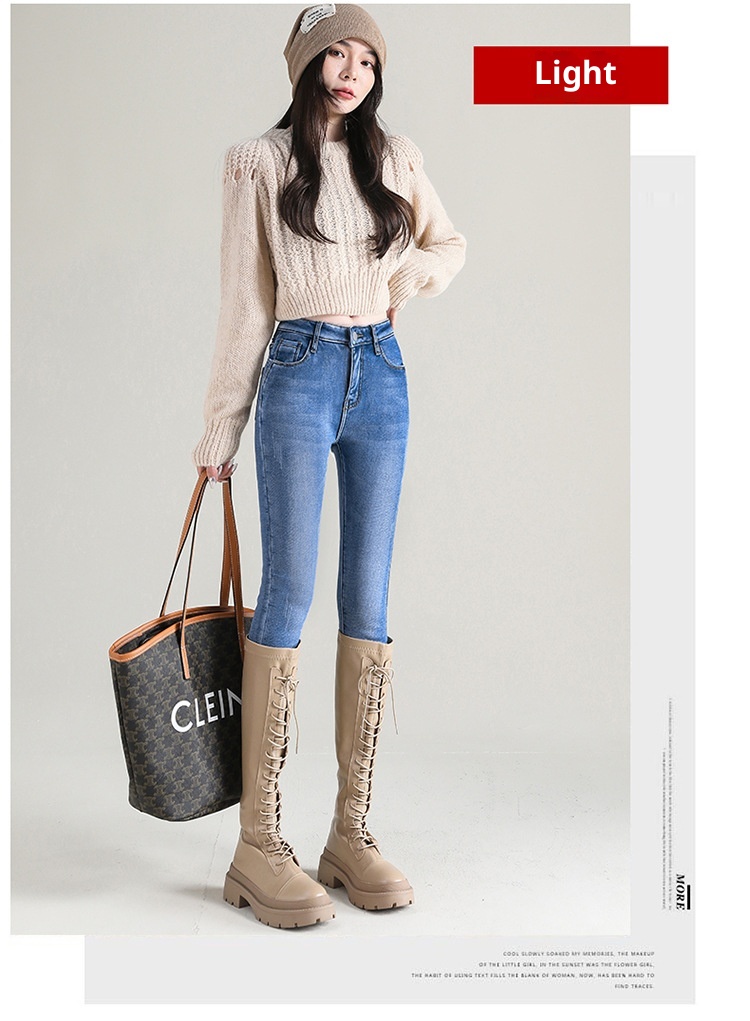 Color: light blue single cropped trousers, dark blue single cropped trousers, light blue single pants, dark blue single pants, light blue fleece padded pants, dark blue fleece padded pants