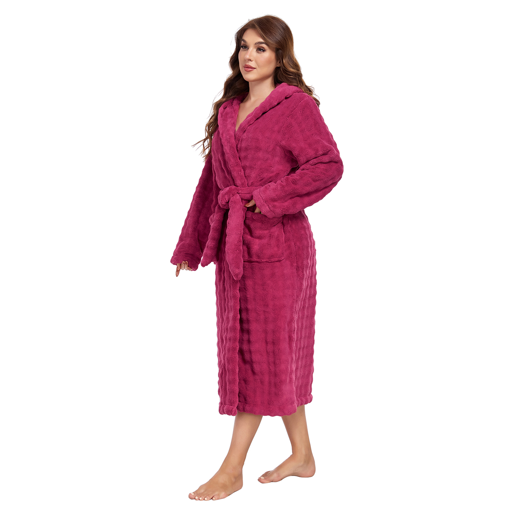 RONGTAI Luxury Plush Absorbency Robe For Women Extra Long Fleece Bathrobe With Hood & Pockets Warm Terry Cloth Loungewear