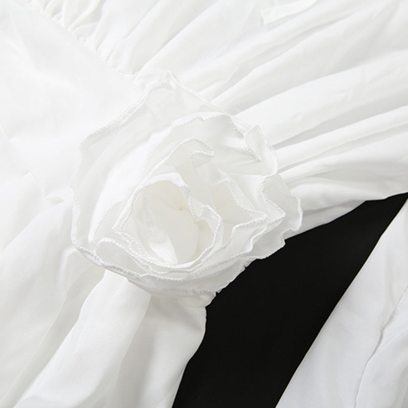 Romantic Tie-Neck & Floral Detail: The adjustable tie and 3D floral decoration create a uniquely feminine and charming focal point.
