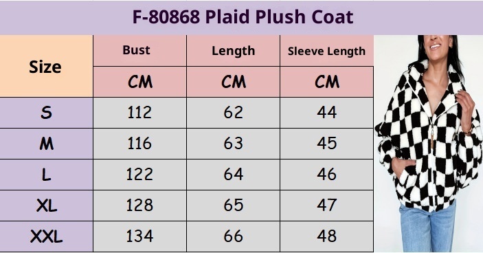 Women's Plush Long Sleeve Plaid Zipper With Pockets Baggy Coat